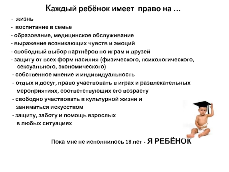Слайд 28каждый ребёнок имеет право на …