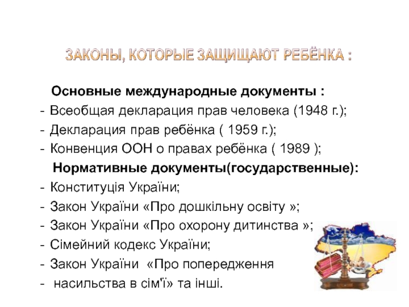 Закон України «Про охорону дитинства »;