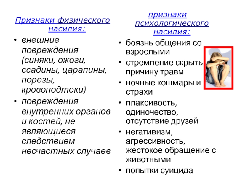 Слайд 5Признаки физического насилия: