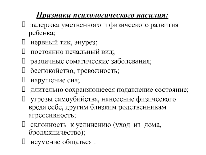 Слайд 9Признаки психологического насилия:
