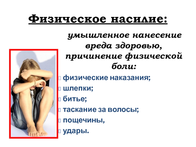 Слайд 4Физическое насилие: