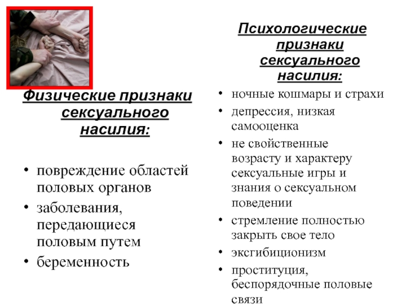 Психологические признаки сексуального насилия: