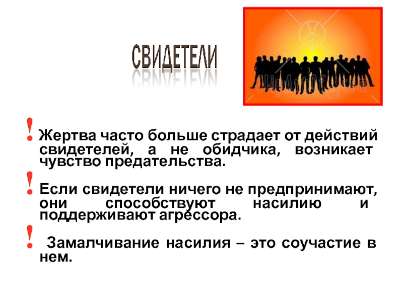 Слайд 23! Жертва часто больше страдает от действий свидетелей, а не