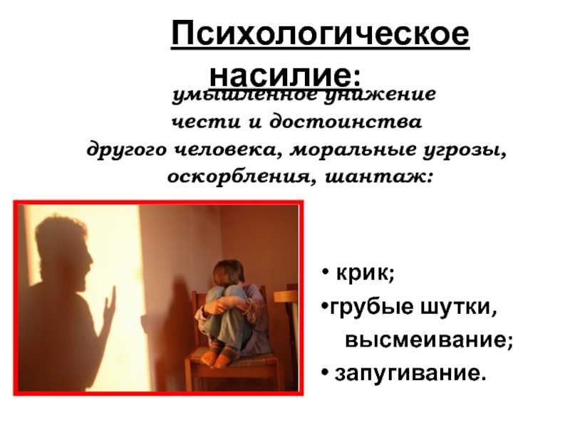 Слайд 8 Психологическое насилие:
