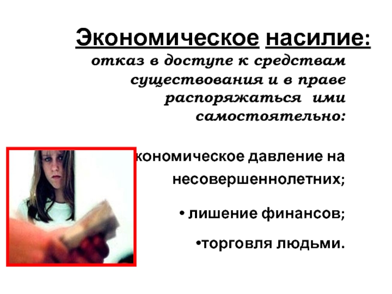 Слайд 10 Экономическое насилие: