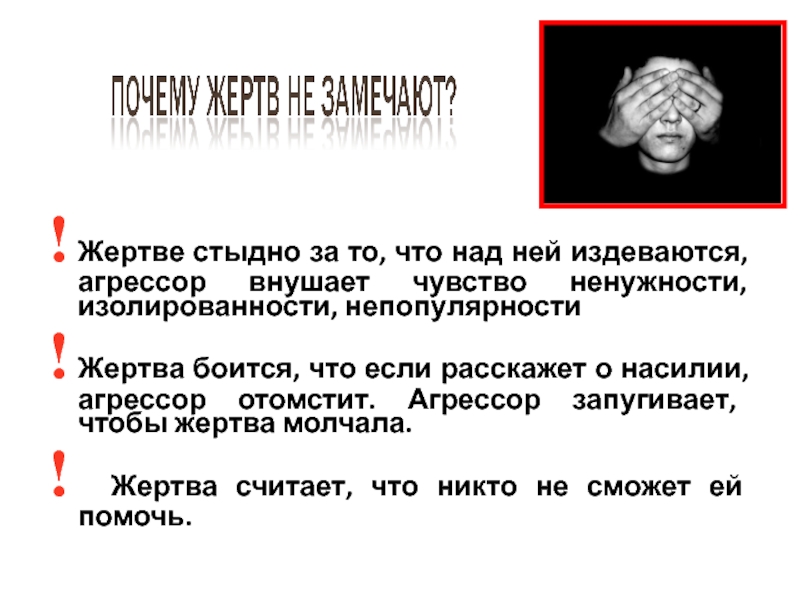 Слайд 22! Жертве стыдно за то, что над ней издеваются, агрессор