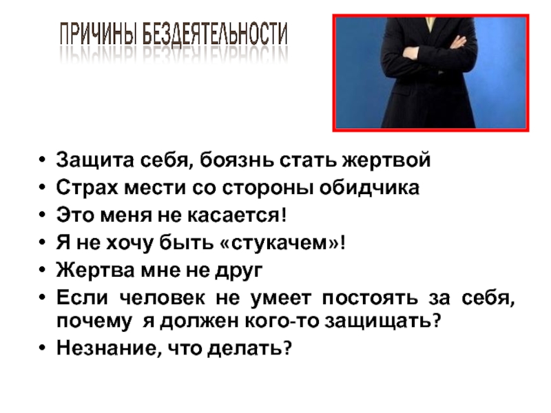 Слайд 24Защита себя, боязнь стать жертвой