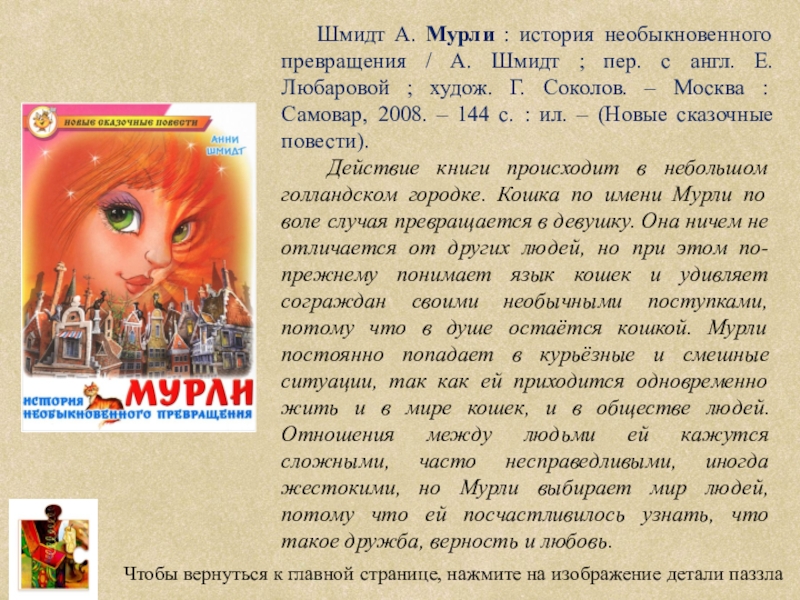 Действие книги происходит в небольшом голландском городке. Кошка по имени Мурли по воле случая превращается в девушку. Она ничем не отличается от других людей, но при этом по-прежнему понимает язык кошек и удивляет сограждан своими необычными поступками, потому что в душе остаётся кошкой. Мурли постоянно попадает в курьёзные и смешные ситуации, так как ей приходится одновременно жить и в мире кошек, и в обществе людей. Отношения между людьми ей кажутся сложными, часто несправедливыми, иногда жестокими, но Мурли выбирает мир людей, потому что ей посчастливилось узнать, что такое дружба, верность и любовь.