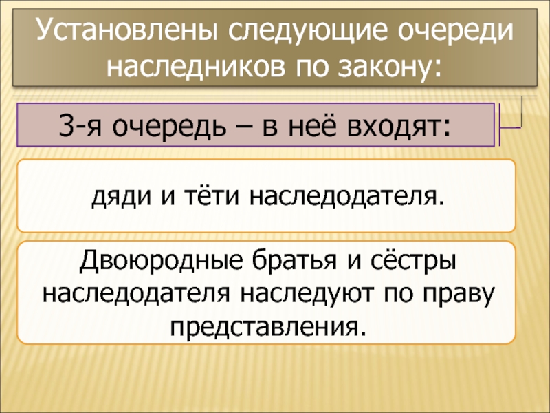 При таких обстоятельствах к наследованию по закону после смерти наследодателя призываются лица, которые заступают на место наследника, умершего раньше, чем наследодатель.