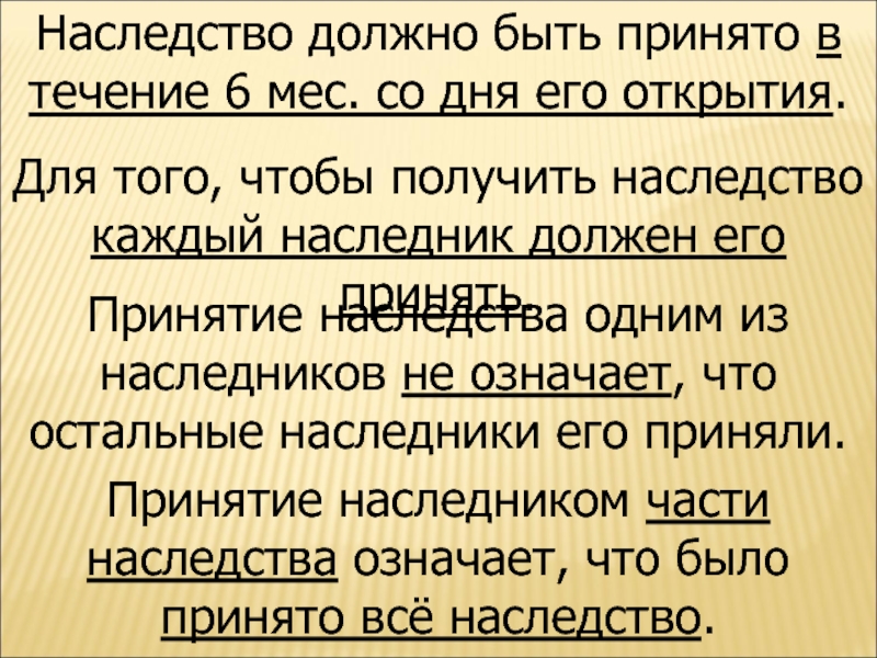 Принятие наследником части наследства означает, что было принято всё наследство.
