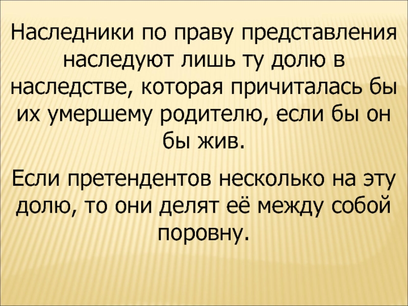 Если претендентов несколько на эту долю, то они делят её между собой поровну.