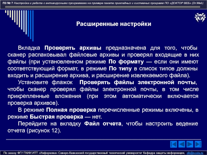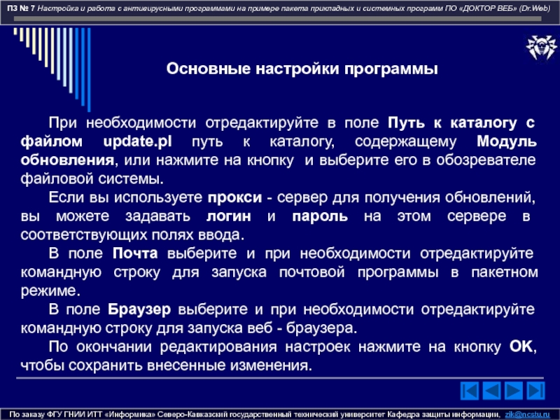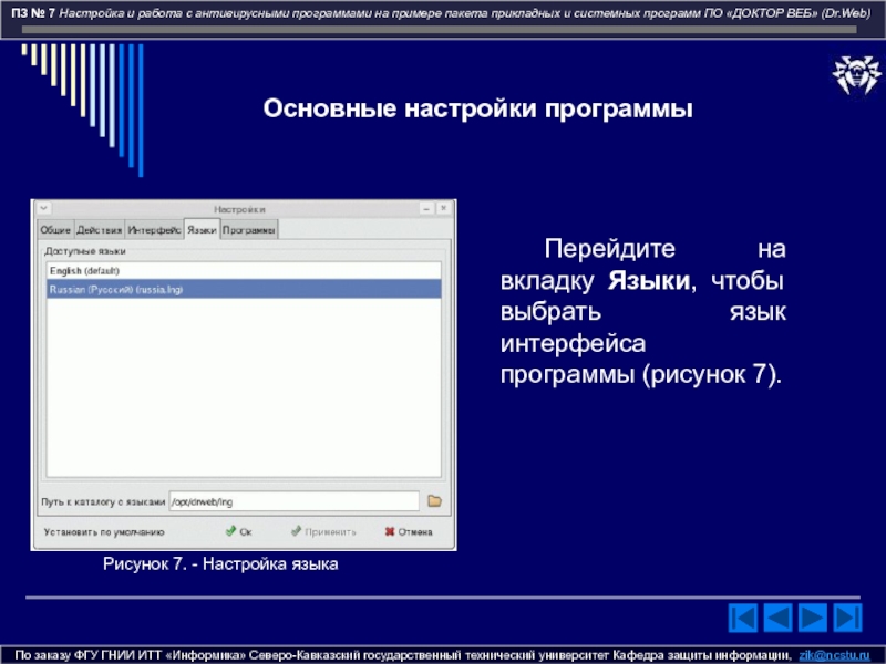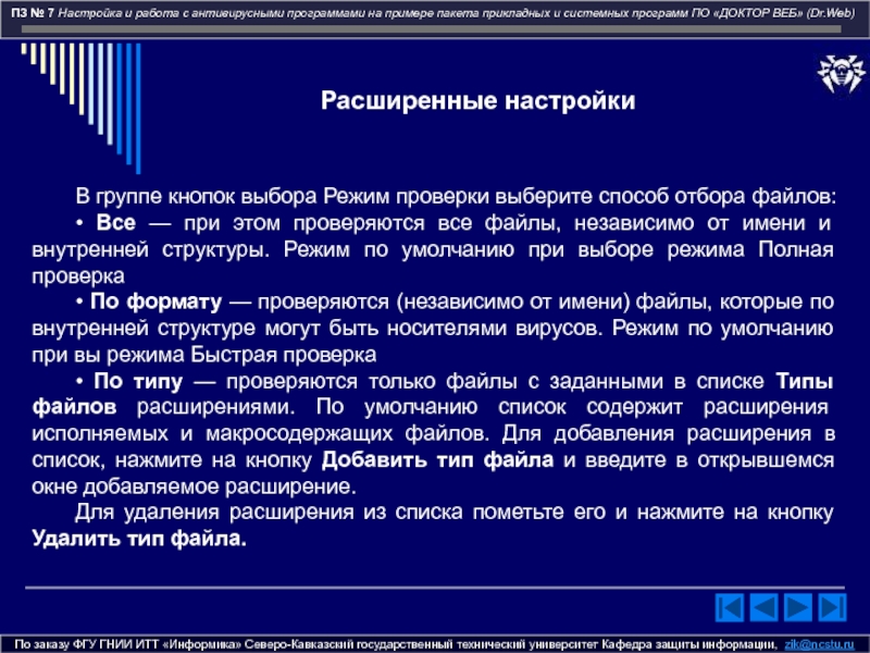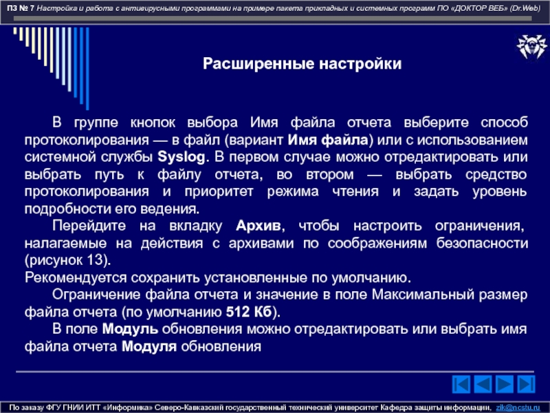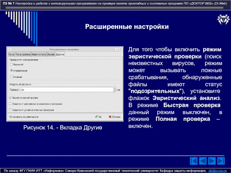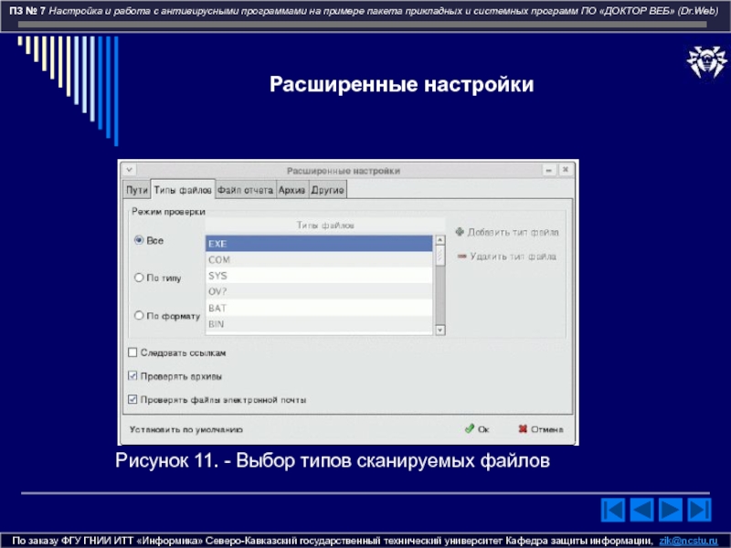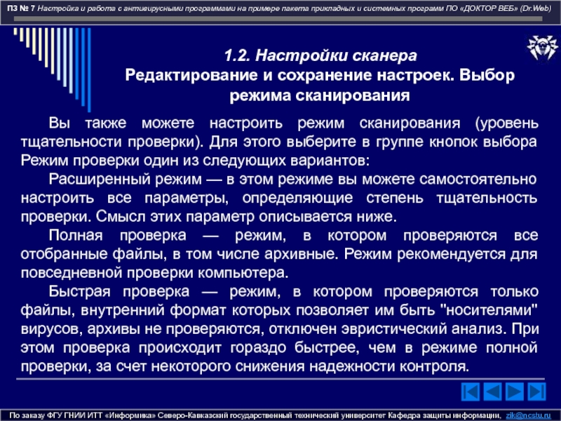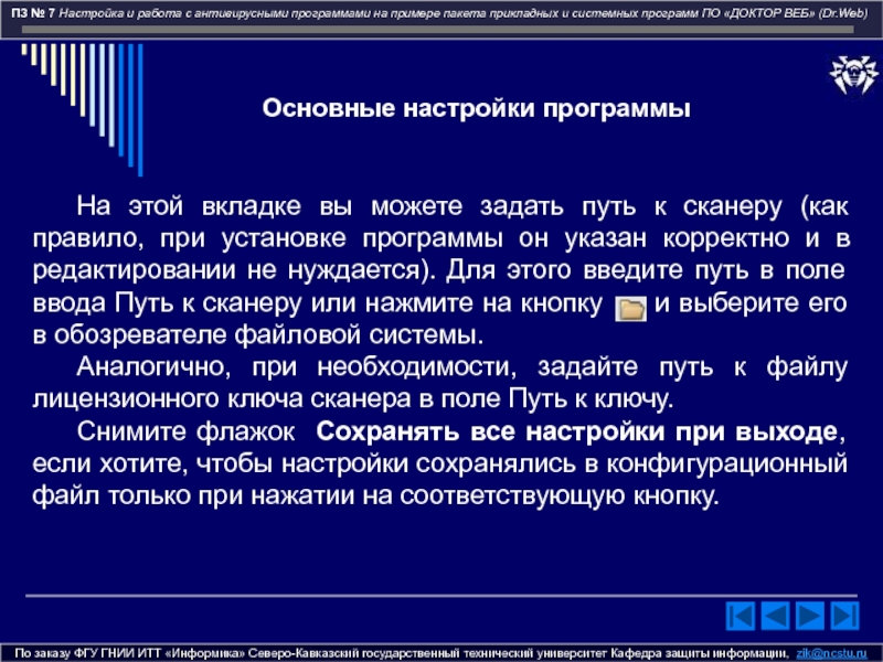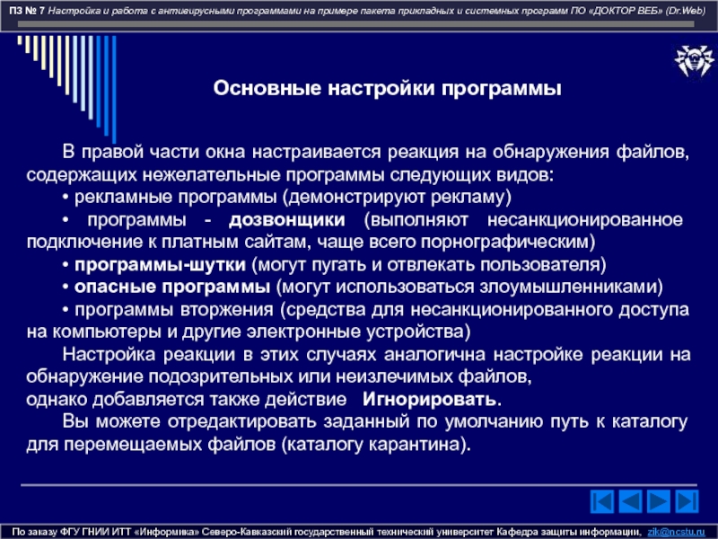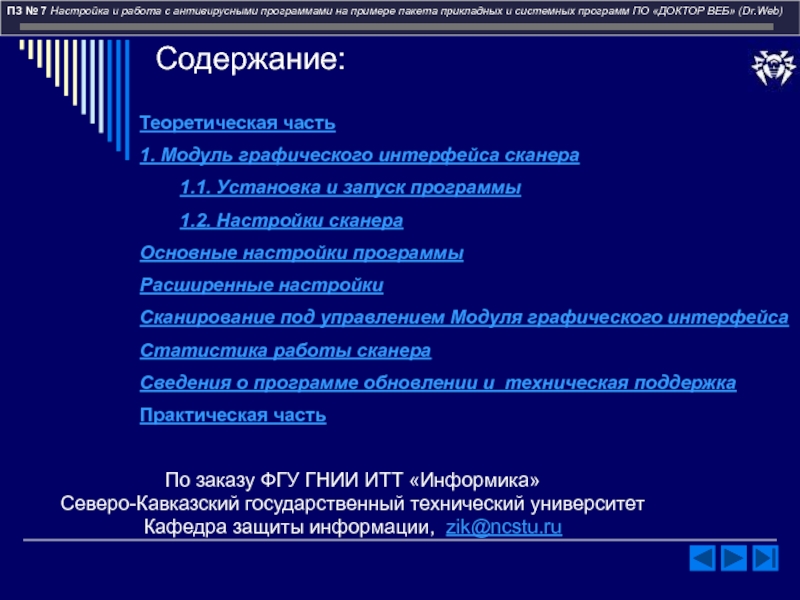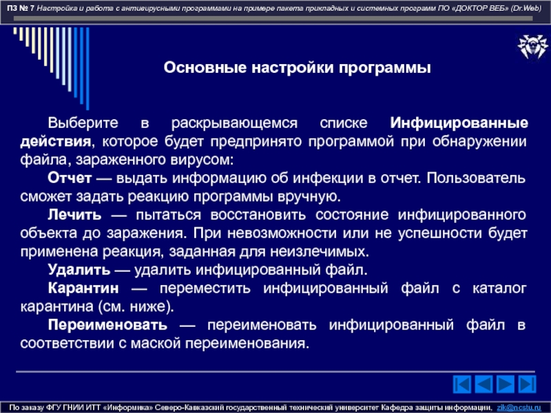 ПЗ № 7 Настройка и работа с антивирусными программами на примере пакета прикладных и системных программ ПО «ДОКТОР ВЕБ» (Dr.Web)
