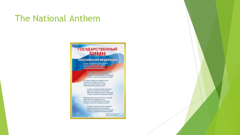 The National AnthemThe National Anthem is one of the official state symbols of the Russian Federation. The