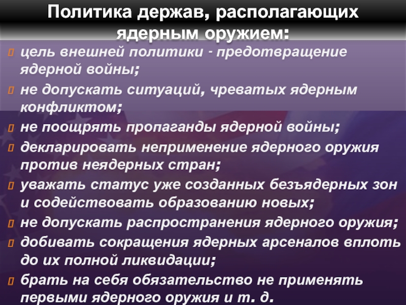 Слайд 61цель внешней политики - предотвращение ядерной войны;
