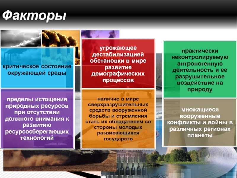 рост насильственных преступлений, распространение наркотиков, терроризма, болезней и деградация окружающей