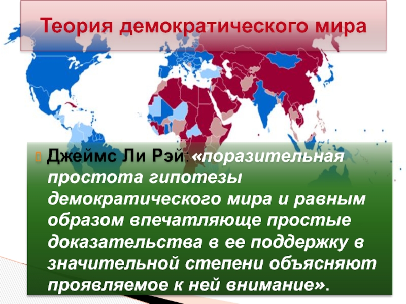 Слайд 73Джеймс Ли Рэй:«поразительная простота гипотезы демократического мира и равным образом