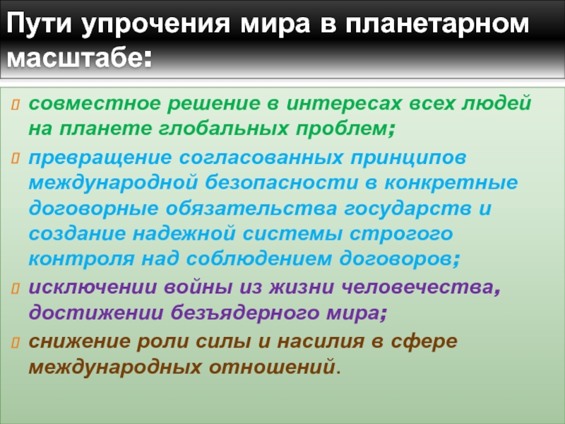 Слайд 60совместное решение в интересах всех людей на планете глобальных проблем;