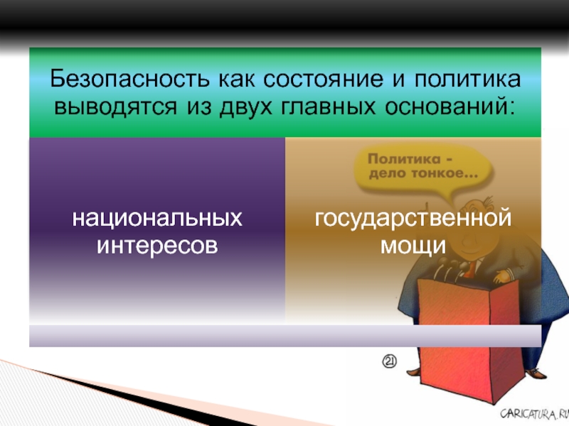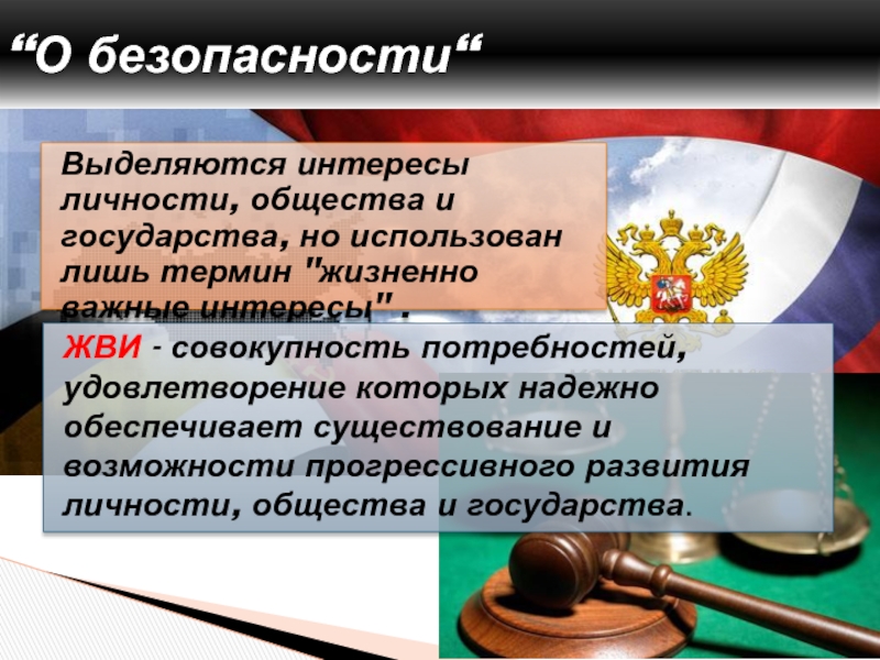 Слайд 21Выделяются интересы личности, общества и государства, но использован лишь термин