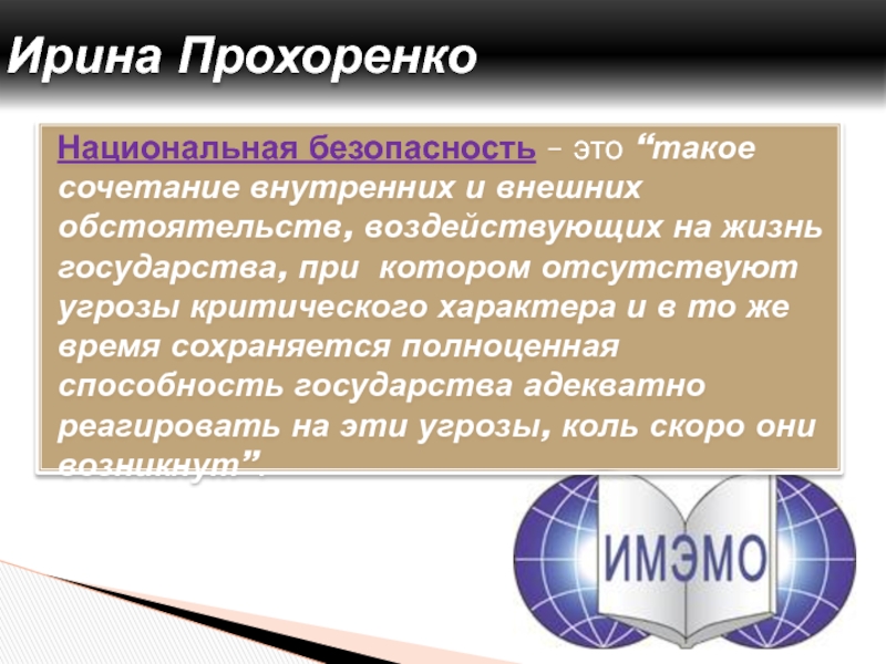 Р. Кохейн и Дж. Най: “доминирование силовых теорий национальной безопасности не способствует плодотворному анализу проблем экономической и экологической независимости”.