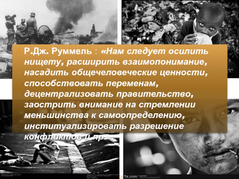 Слайд 75Р.Дж. Руммель : «Нам следует осилить нищету, расширить взаимопонимание, насадить