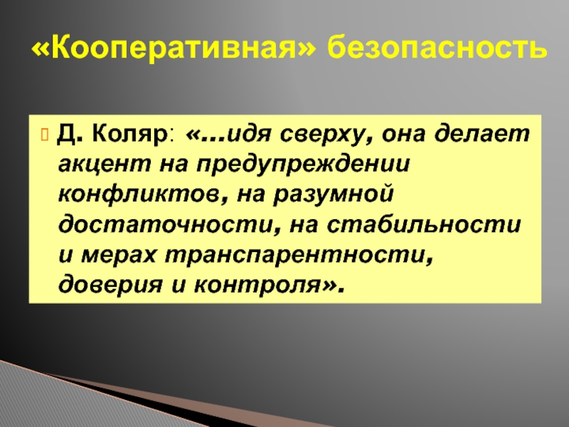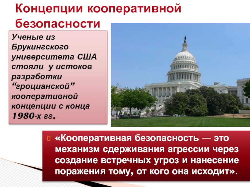 Слайд 66«Кооперативная безопасность — это механизм сдерживания агрессии через создание встречных