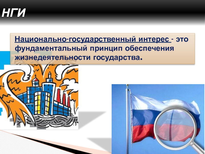 Слайд 22Национально-государственный интерес - это фундаментальный принцип обеспечения жизнедеятельности государства.