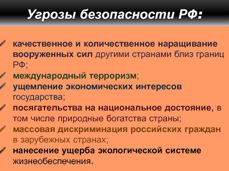 б) опасности для экономики, социальных отношений, военной безопасности и т.