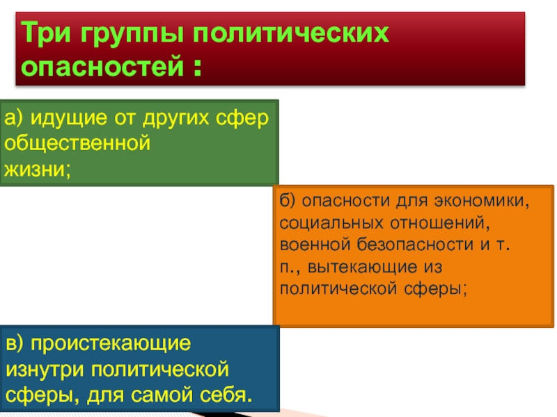 Слайд 13Социальные явления, процессы, действия, которые способны подорвать власть, правовой порядок,