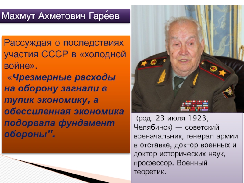 Слайд 65Рассуждая о последствиях участия СССР в «холодной войне».