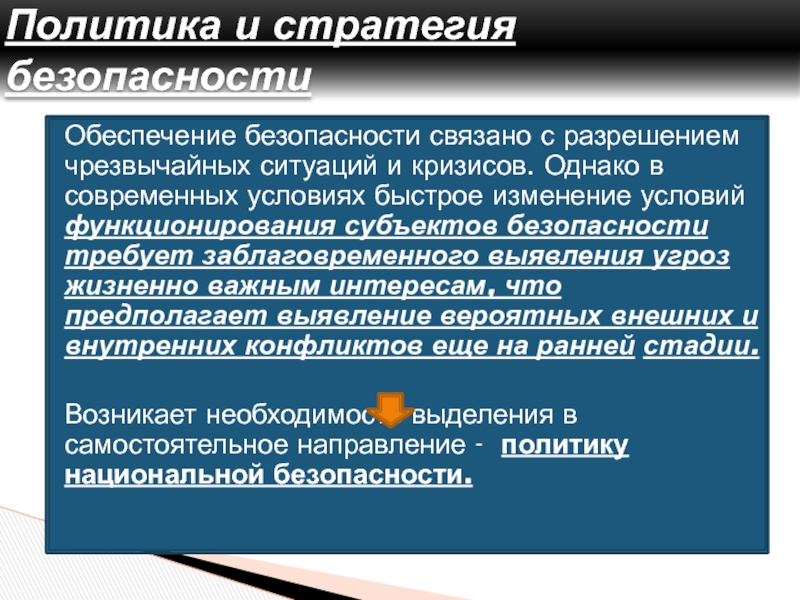 Политика и стратегия международной безопасности в последние годы начинает менять свое содержание.