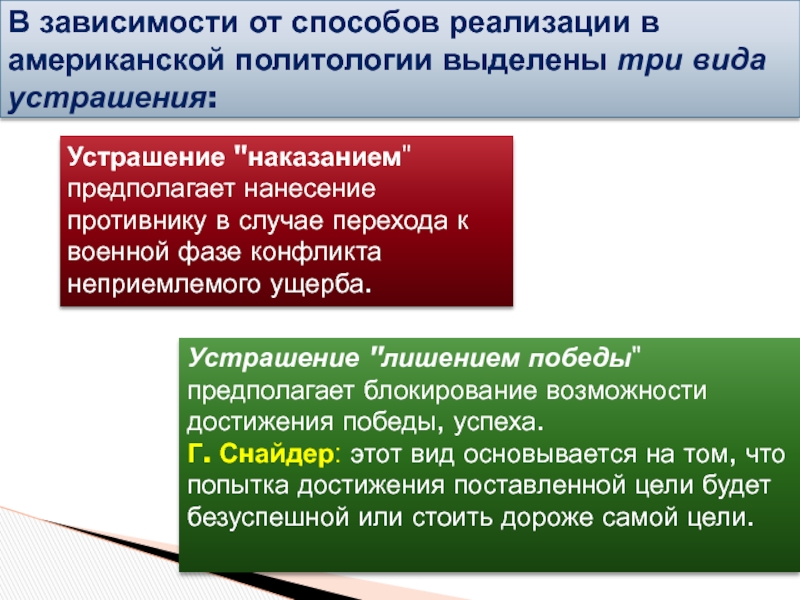 Угроза - стадия крайнего обострения противоречий, когда налицо готовность одного из субъектов политики применить силу в отношении конкретного объекта для достижения своих политических и иных целей.