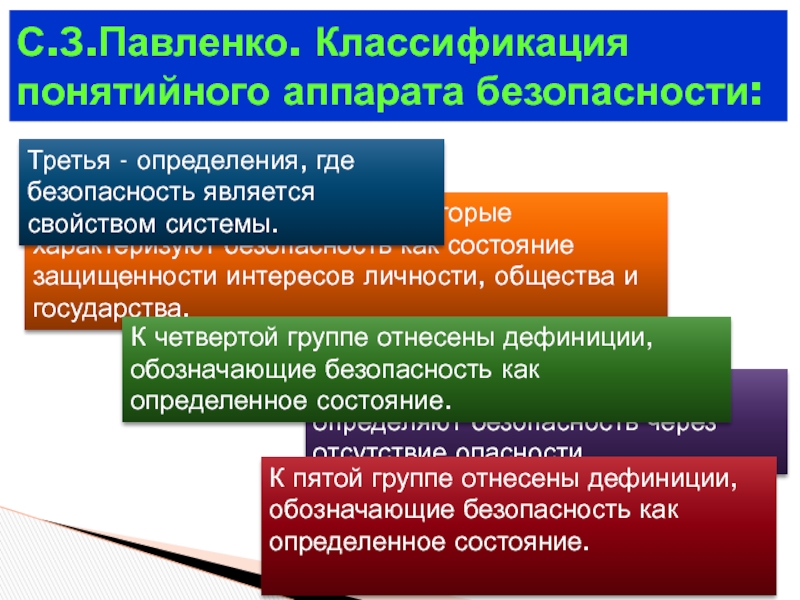 Слайд 19С.З.Павленко. Классификация понятийного аппарата безопасности: