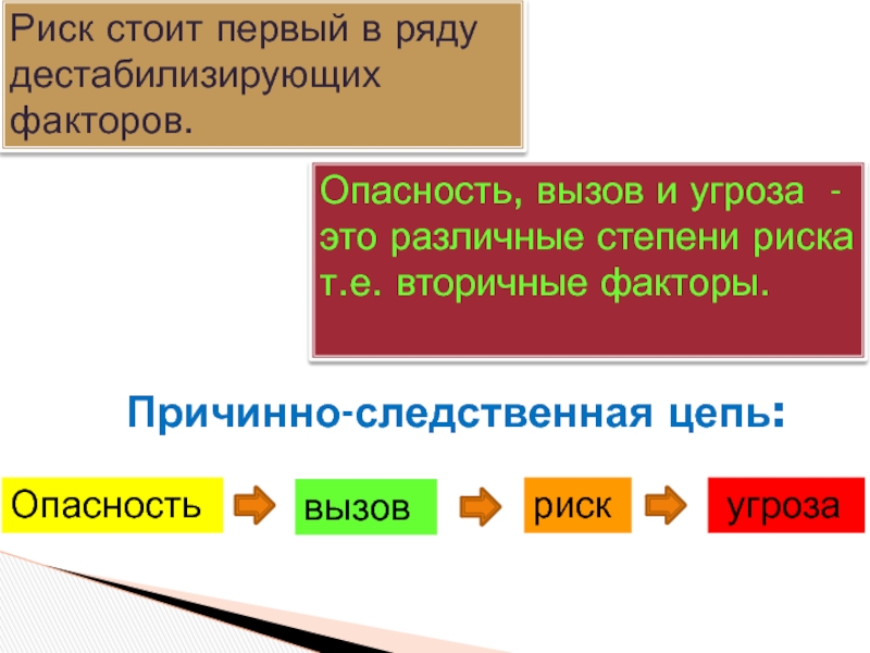 Слайд 18Риск стоит первый в ряду дестабилизирующих факторов.