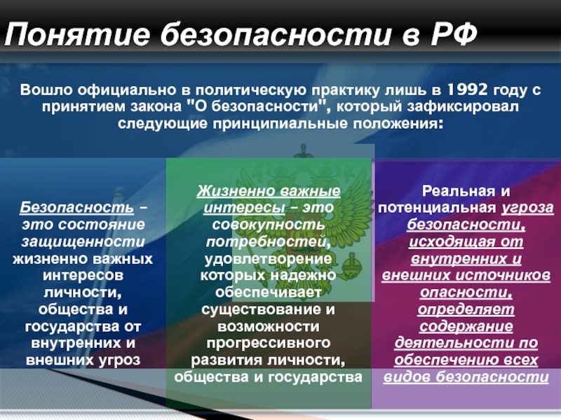 которых надежно обеспечивает существование и возможности прогрессивного развития личности, общества и государства.