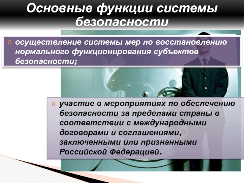 Участие в мероприятиях по обеспечению безопасности за пределами страны.