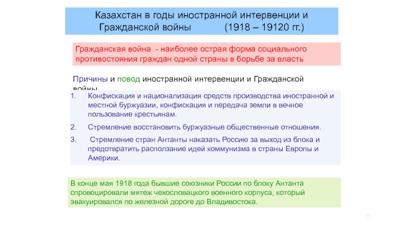 Слайд 37Казахстан в годы иностранной интервенции и Гражданской войны