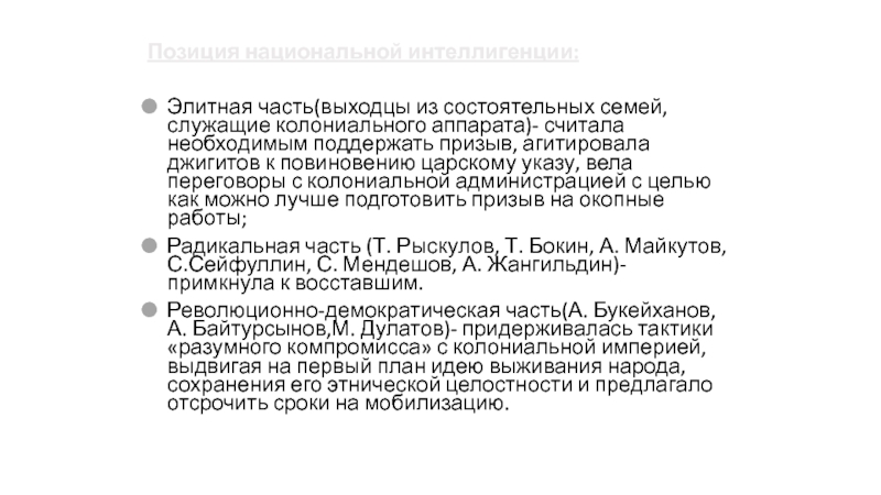 Слайд 6Позиция национальной интеллигенции: