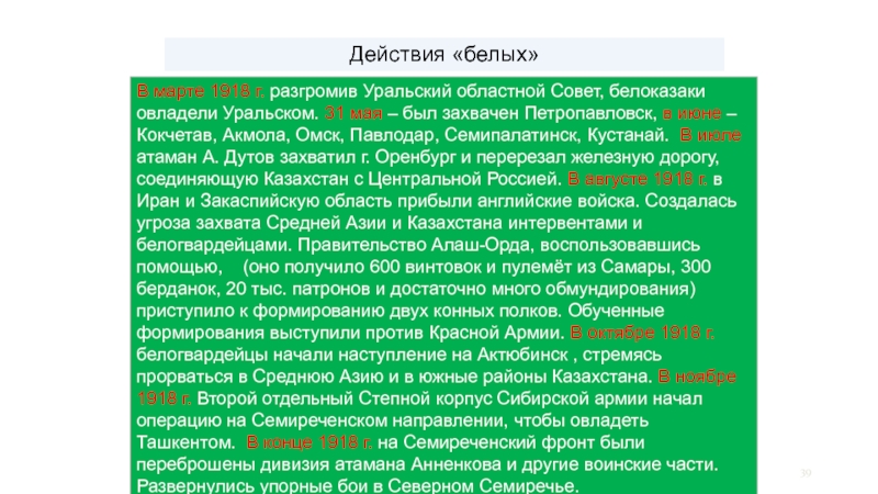 Слайд 39Действия «белых»