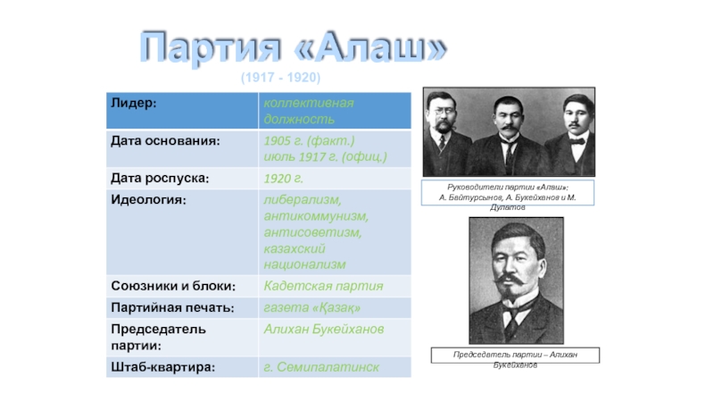 Организации партии эсеров, меньшевиков которые появились в Казахстане весной 1917, выступали за передачу земли тем, кто её обрабатывает, и за реформирование капиталистических отношений в социалистические.