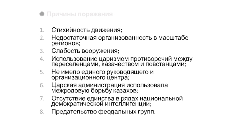 Вывод: царизму удалось отколоть от общенационального движения туземную администрацию, часть байства и мусульманского духовенства.