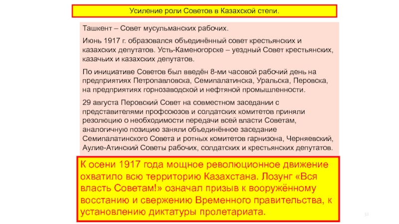 Слайд 32Усиление роли Советов в Казахской степи.