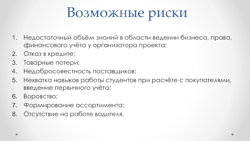 Слайд 17Возможные риски