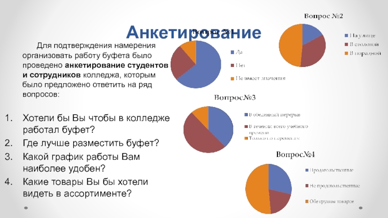Для подтверждения намерения организовать работу буфета было проведено анкетирование студентов
