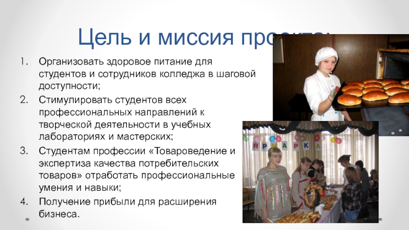 Работу можно организовать не только в колледже, но и в виде выездной торговли в обеденное время по предприятиям города.