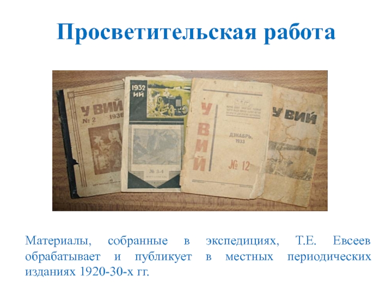 Материалы, собранные в экспедициях, Т.Е. Евсеев обрабатывает и