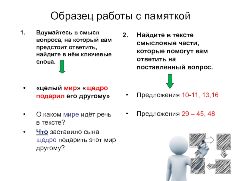 Найдите в тексте смысловые части, которые помогут вам ответить на поставленный вопрос.