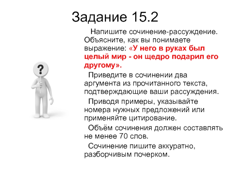 Напишите сочинение-рассуждение, раскрывая смысл высказывания…: «….». Аргументируя свой ответ, приведите