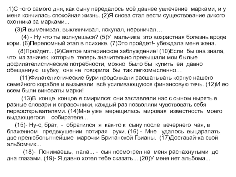 увлечение марками, и у меня кончилась спокойная жизнь. (2)Я снова
