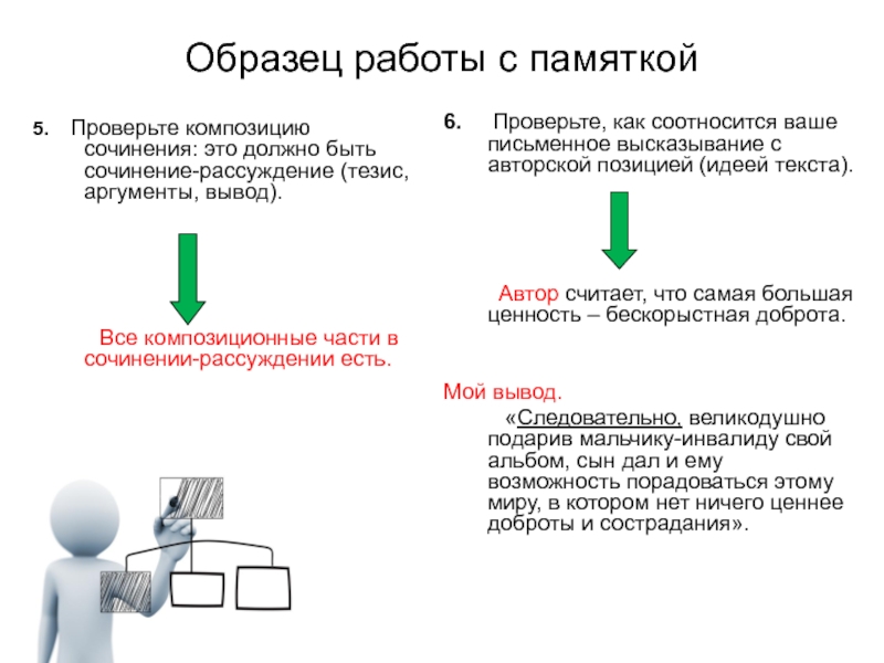 6. Проверьте, как соотносится ваше письменное высказывание с авторской позицией (идеей текста).