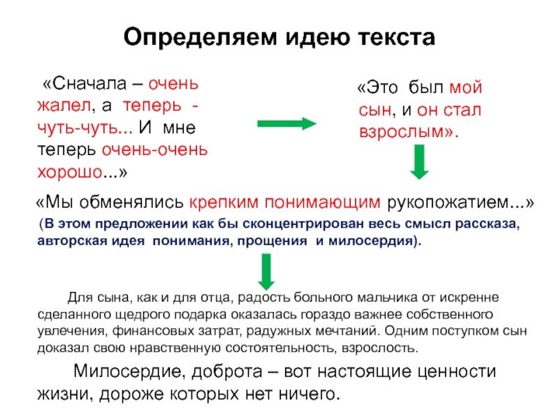 (В этом предложении как бы сконцентрирован весь смысл рассказа, авторская идея понимания, прощения и милосердия).